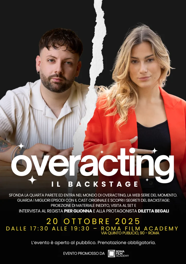 Dalle 17:30 alle 19:30, non una semplice proiezione, ma un viaggio “dietro le quinte” nel mondo della webserie Overacting, diretta da Pier Glionna con Diletta Begali protagonista.